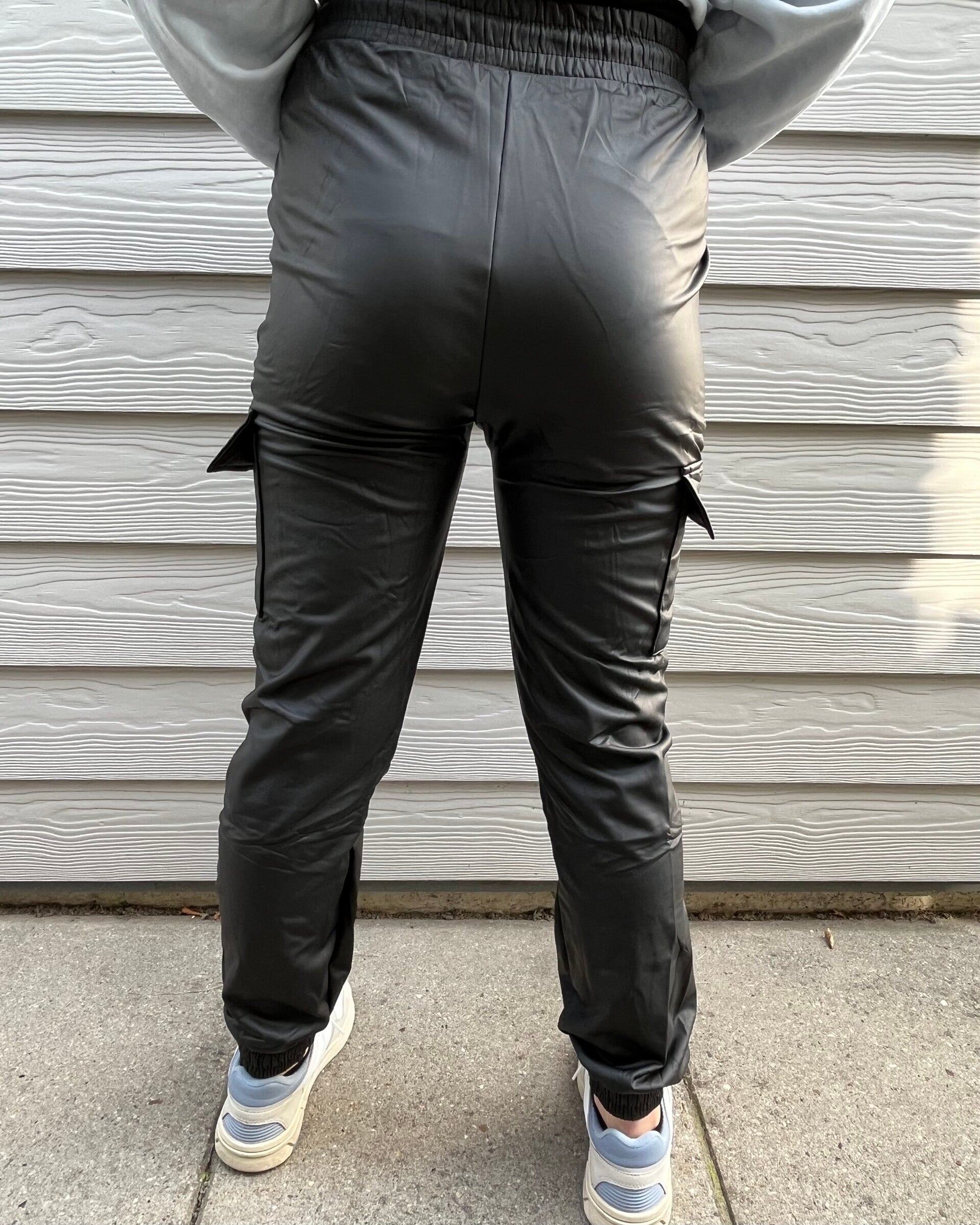 Leuke cargo leatherlook broek. Goed te combineren met onze andere items.